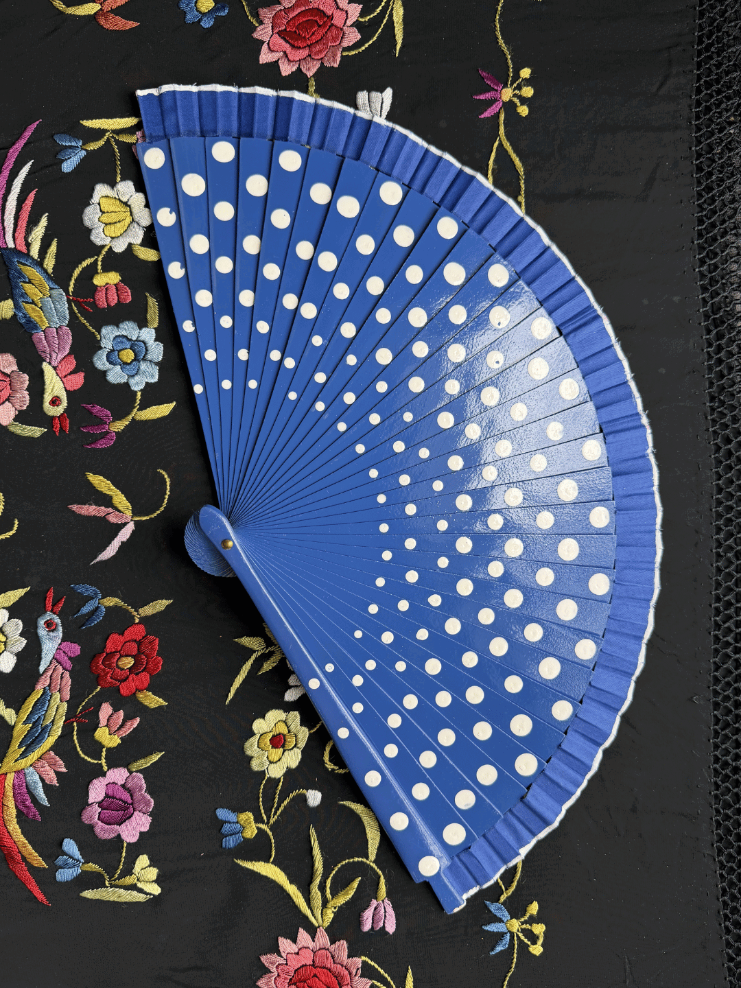 Abanico español de 23 cm pintado a mano de ambos lados. Seleccionado especialmente para baile flamenco.
