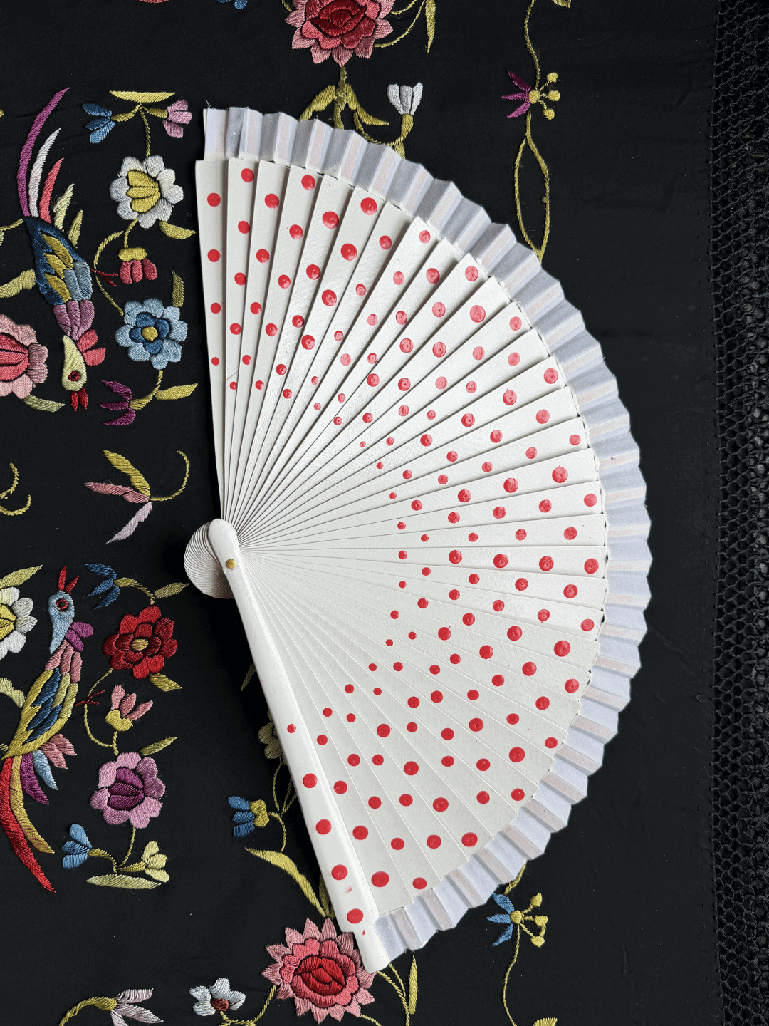 Abanico 23 cm blanco lunar rojo