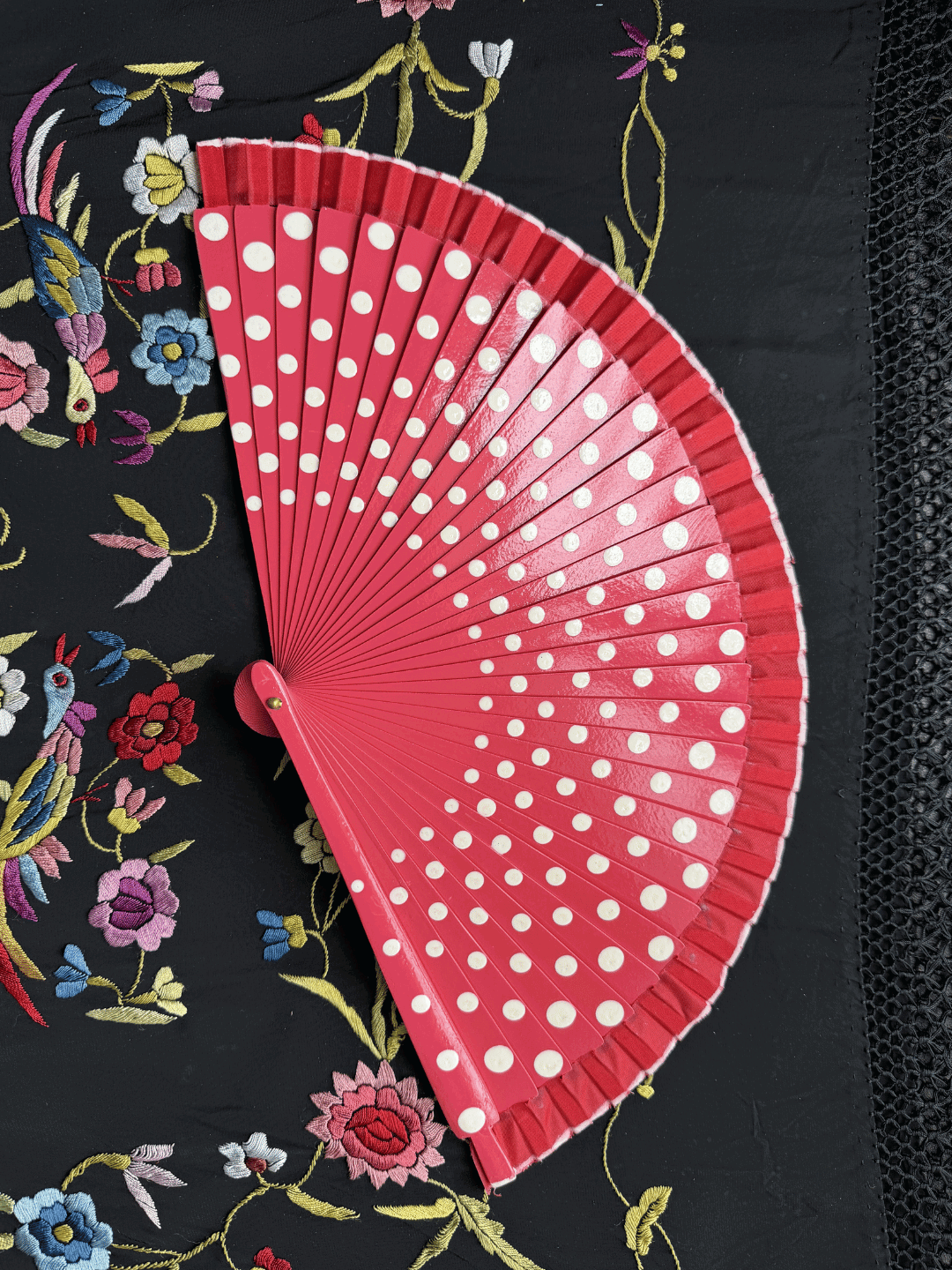 Abanico español de 23 cm pintado a mano de ambos lados. Seleccionado especialmente para baile flamenco.