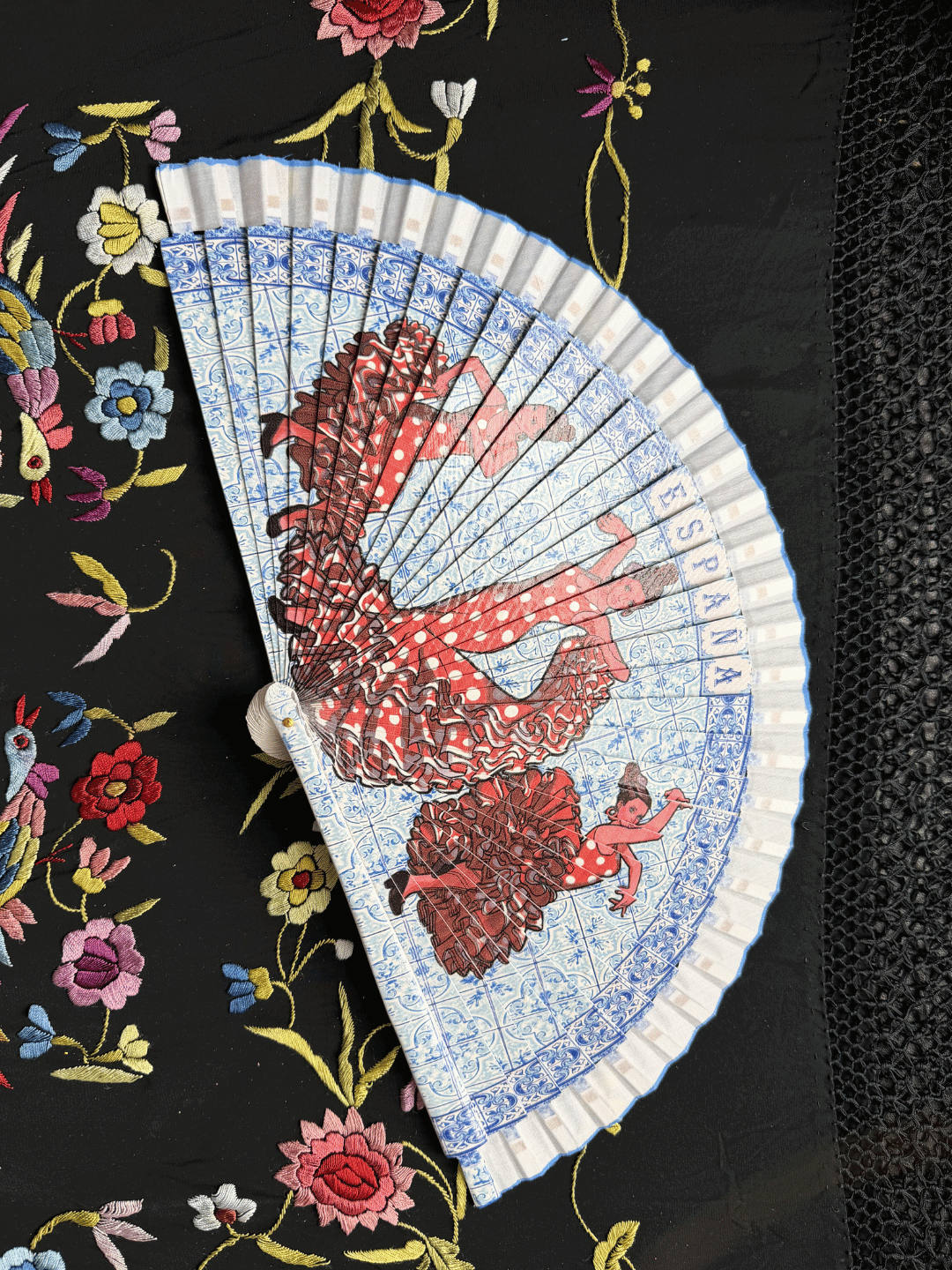 Abanico español de 23 cm. Imagen impresa "España". Seleccionado especialmente para baile flamenco.