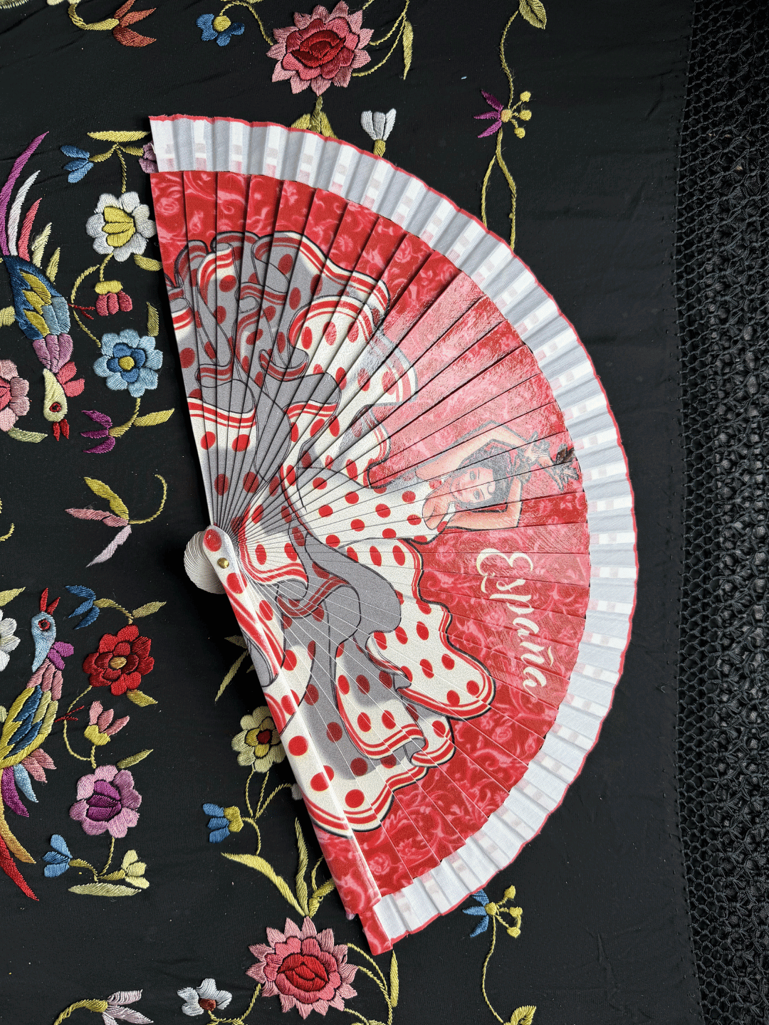 Abanico español de 23 cm. Imagen impresa "bailaora". Seleccionado especialmente para baile flamenco.