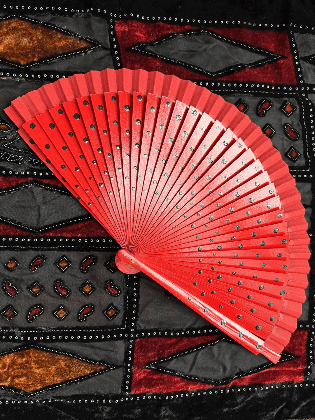 Abanico español de 23 cm pintado a mano de ambos lados. Seleccionado especialmente para baile flamenco.