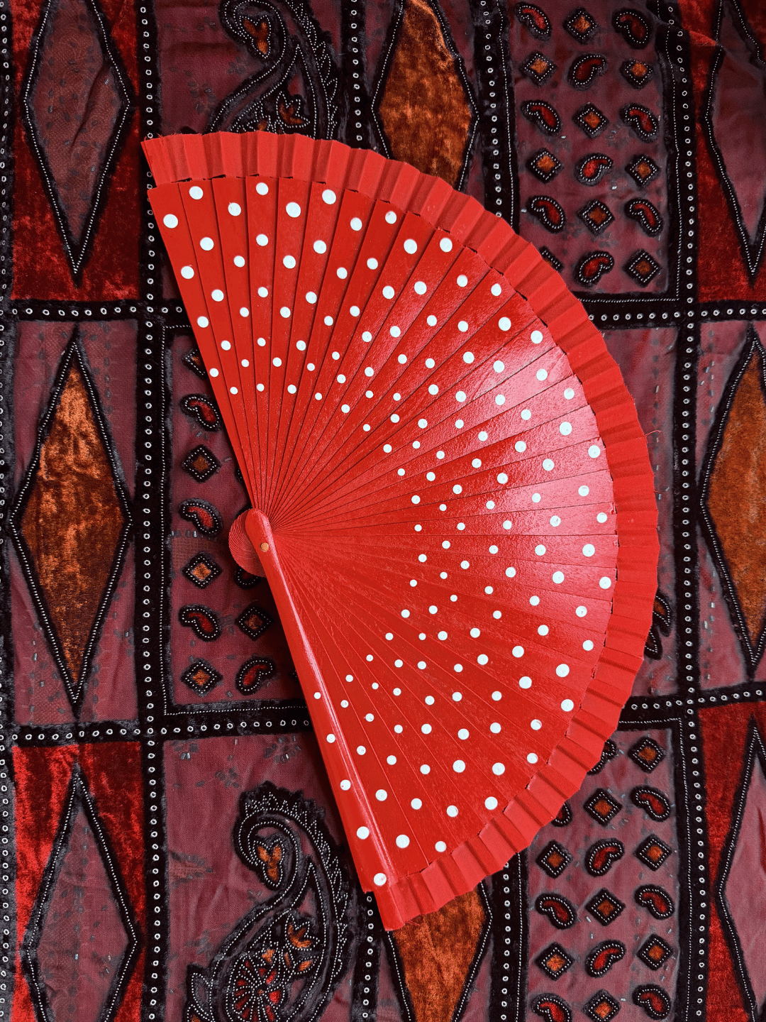 Abanico 23 cm rojo lunar blanco