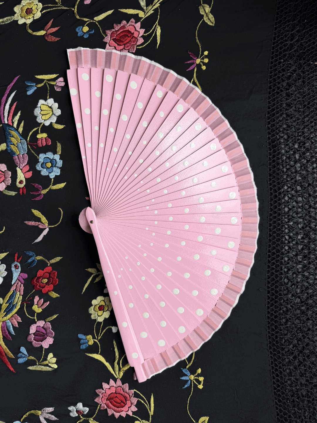 Abanico español de 23 cm pintado a mano de ambos lados. Seleccionado especialmente para baile flamenco.
