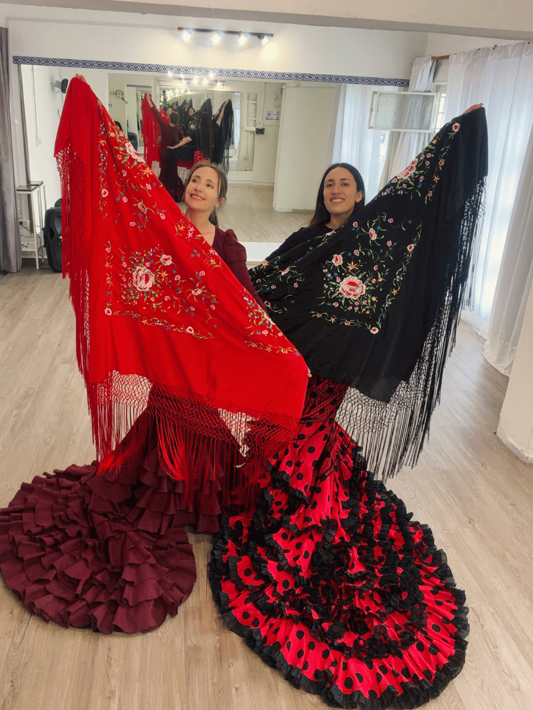 Mantón cuadrado "simil Manila" importado desde España. Las medidas son 1,50 cm x 145 cm Al doblarlo de manera triangular, la base mide 2,10 cm
